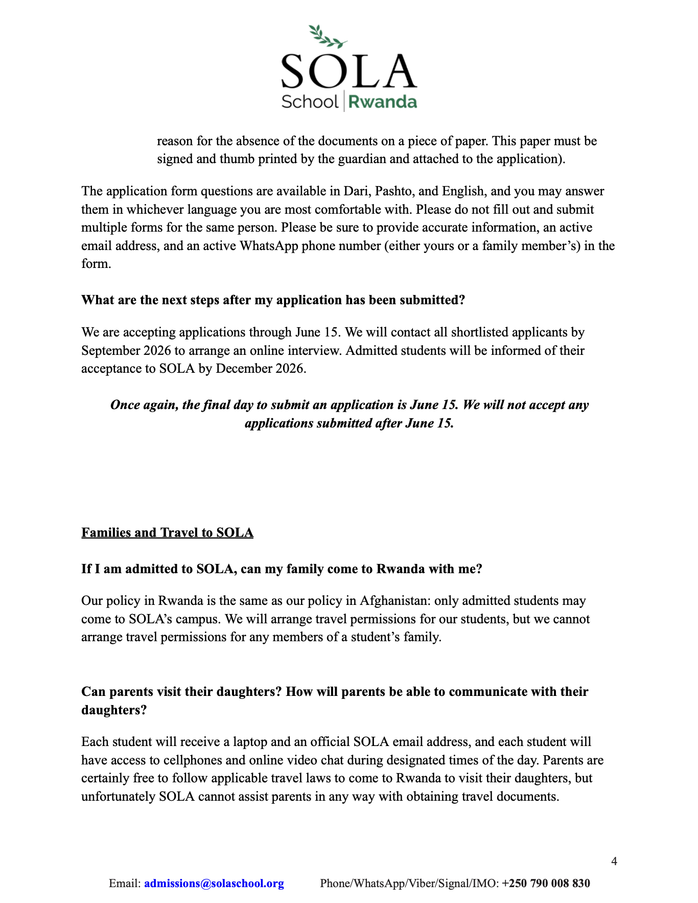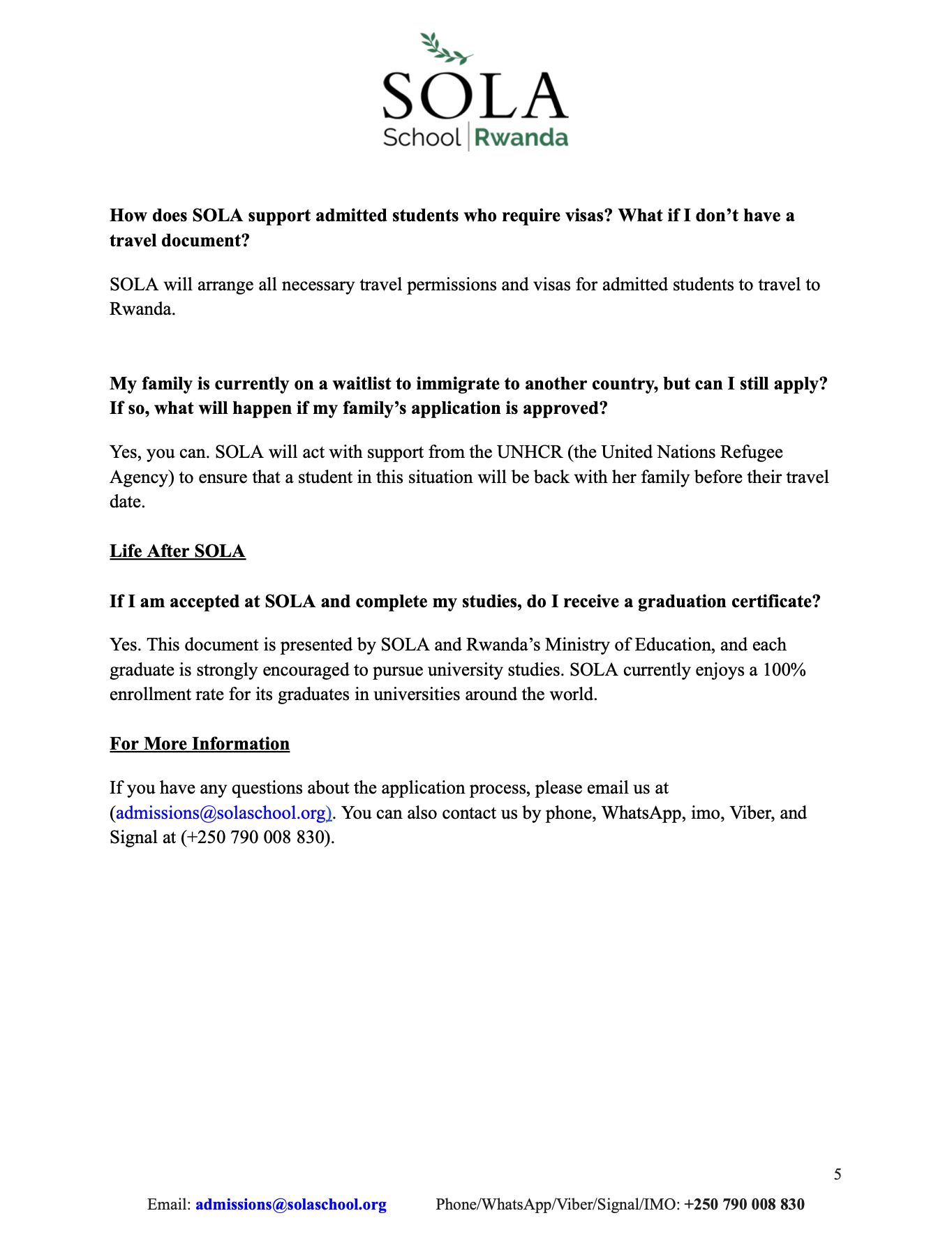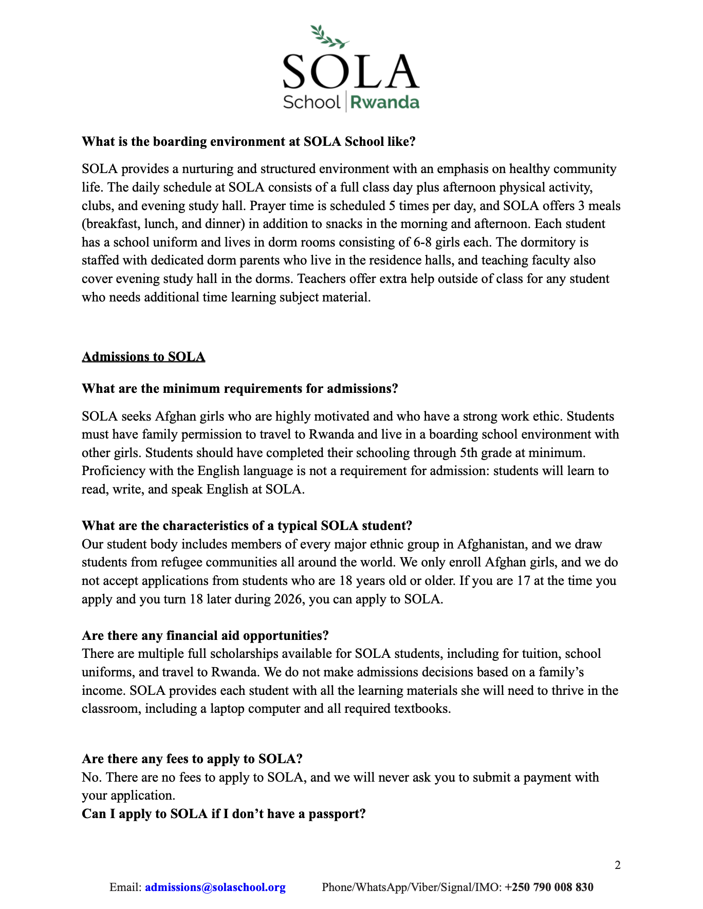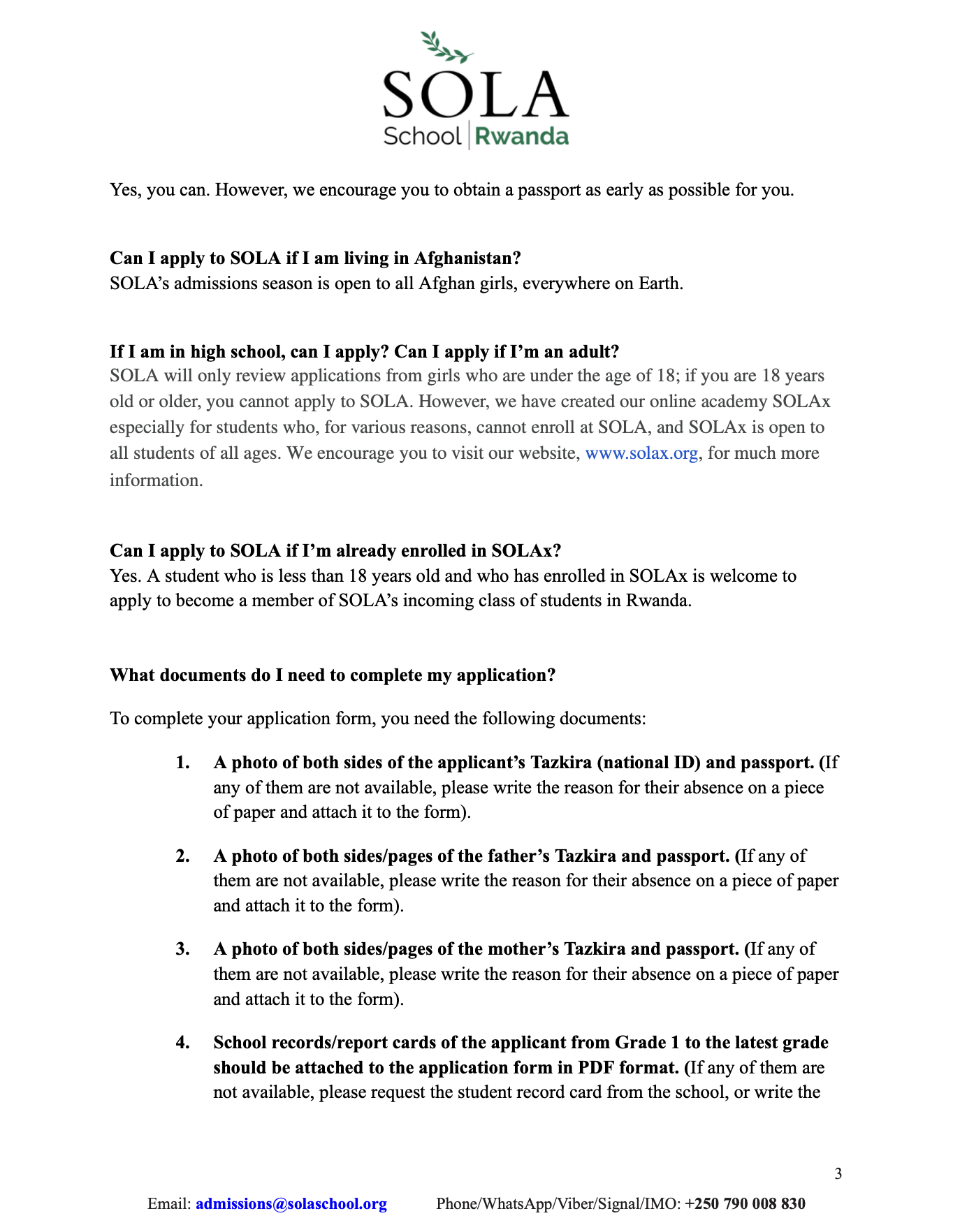If you have any questions about the application process, you can email us at admissions@solaschool.org. You can also contact us on WhatsApp at +250 790 008 830.